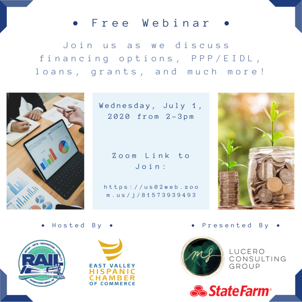 Join us on this Free Webinar where Lucero Consulting will be discussing about financing options, PPP/EIDL, loans, grants, and much